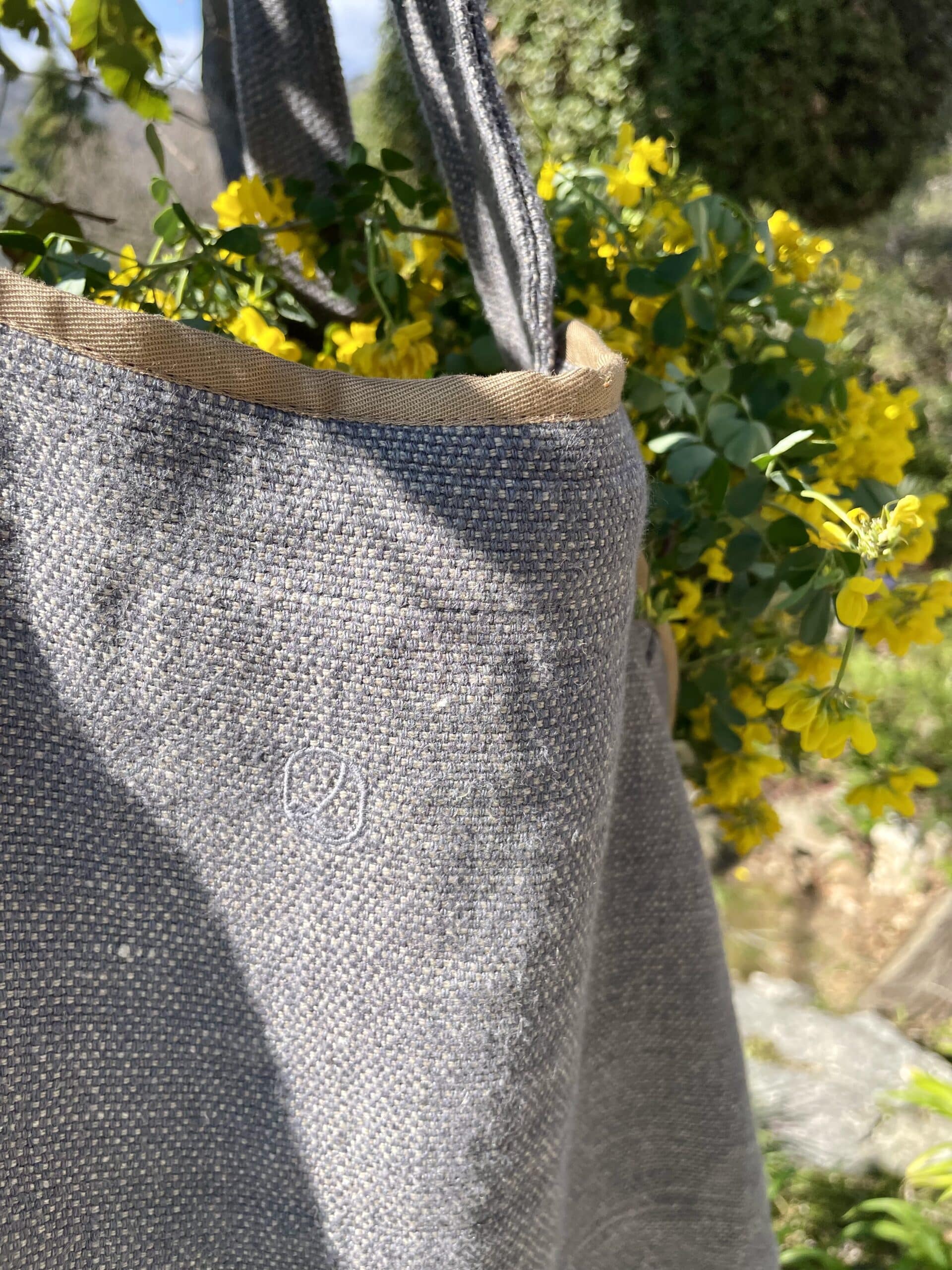 Réalisé à partir d’un lin tissé dans les hauts-de-France, la confection et la broderie ont été réalisées dans deux Etablissements de Service d’Aide par le Travail (ESAT) des Alpes- Maritimes.